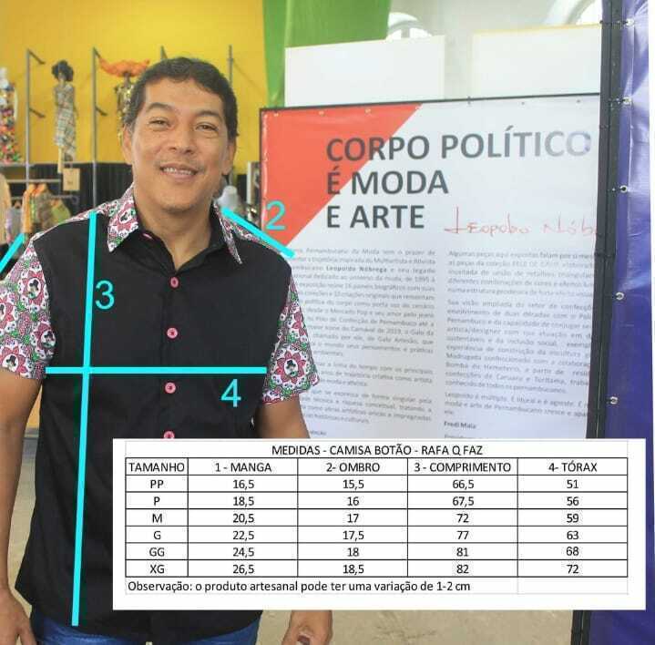 A Camisa de Botão Odoyá Retalho Unissex da Rafa Q Faz é uma roupArte perfeita para quem busca estilo, autenticidade e conexão com a cultura pernambucana.